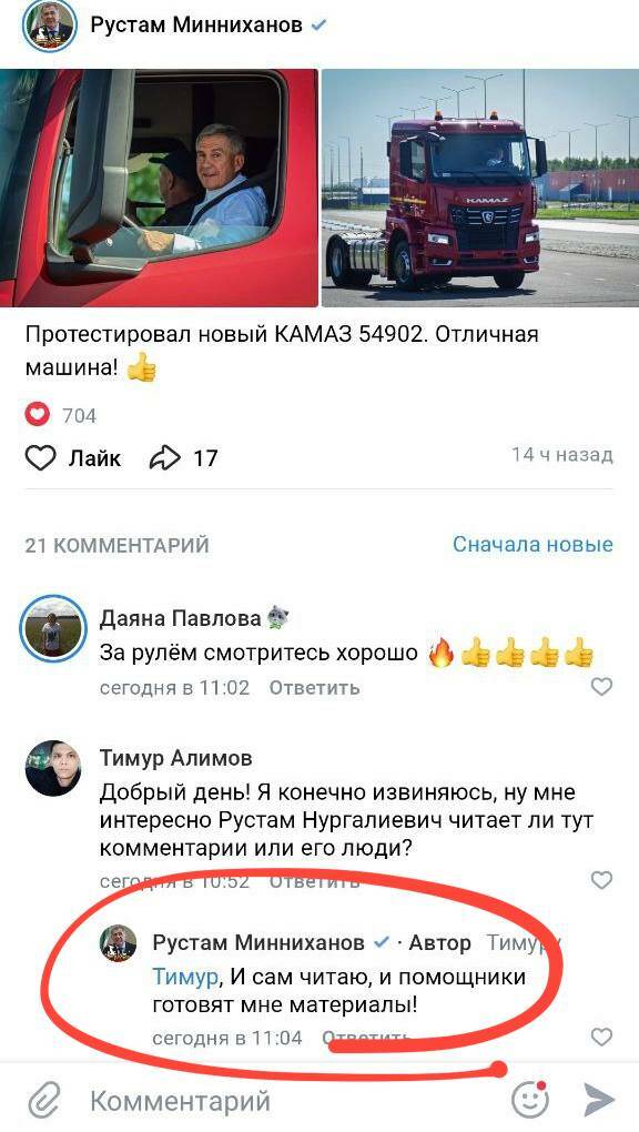 Рөстәм Миңнеханов соцчелтәрләрдәге комментарийларны укыймы?