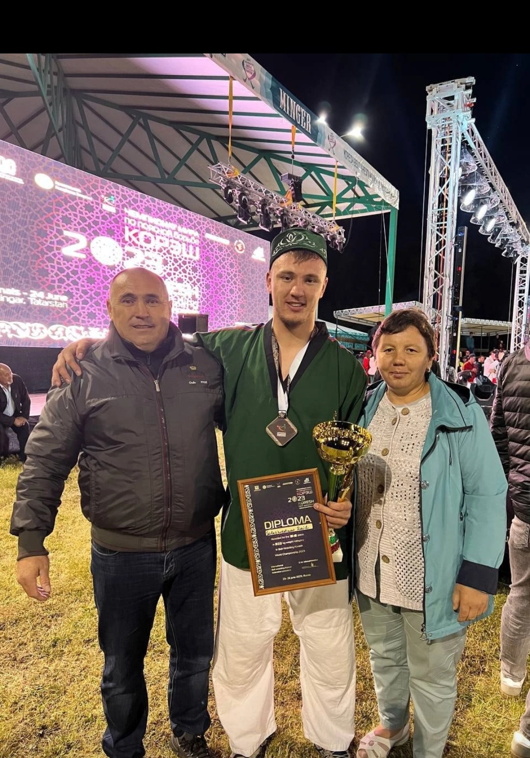 Киров өлкәсенең Нократ Аланы егете, танылган көрәшче Раил СӘЛАХЕТДИНОВ 23 яшендә икенче тапкыр дөнья чемпионы булды. 24 июньдә Саба районы Миңгәр авылында булып узган көрәш буенча Дөнья чемпионатында, 90 кг авырлыкта көрәшеп, кабат чемпион исемен яулады. 2018 елда Россиянең спорт остасы исеменә лаек булды. Раил Сәлахетдиновның туган җире булып Чиләбе санала. Киров өлкәсенең Нократ Аланы шәһәрендә үсә. Әтисе Ринат абый заводта сакчы булып эшли, тормыш иптәше Эльвира апа балалар бакчасында хезмәт куя. Раилнең ике сеңлесе бар. Үзе Казанда яши. Магистратураның II курсына күчкән, әлегә эшләми. Бөтен көче, вакыты укуга һәм тренировкаларга китә. - Раил, ике ел рәттән дөнья чемпионы исеменә лаек булуың белән чын күңелдән котлыйбыз! Мондый зур җиңүләр артында күпме көч, тырышлык, түземлек ята. Көрәшле тормыш ничә яшьләрдә башланды? - Көрәш белән 13 яшьтән мавыгам. Бу яшьтә инде аңлап, асылын белеп килдем. Башта келәмгә мине әти алып керде. Ул үзе дә көрәшче. Аңа карап та гел соклана, кызыга идем. Әти ара ерак дип тормады, мине даими рәвештә Нократ Аланыннан Кукмара районының Олыяз авылына хәтле тренировкага йөретте. Кайда гына уздырылса да, ярышларымны калдырмый. Бик ялкынланып килсәм дә, беренче тапкыр көрәшә башлаган мәлләр әллә ни хәтердә түгел. Якын тирәдә оештырылган Сабантуйларның берсеннән дә калмый идек инде.