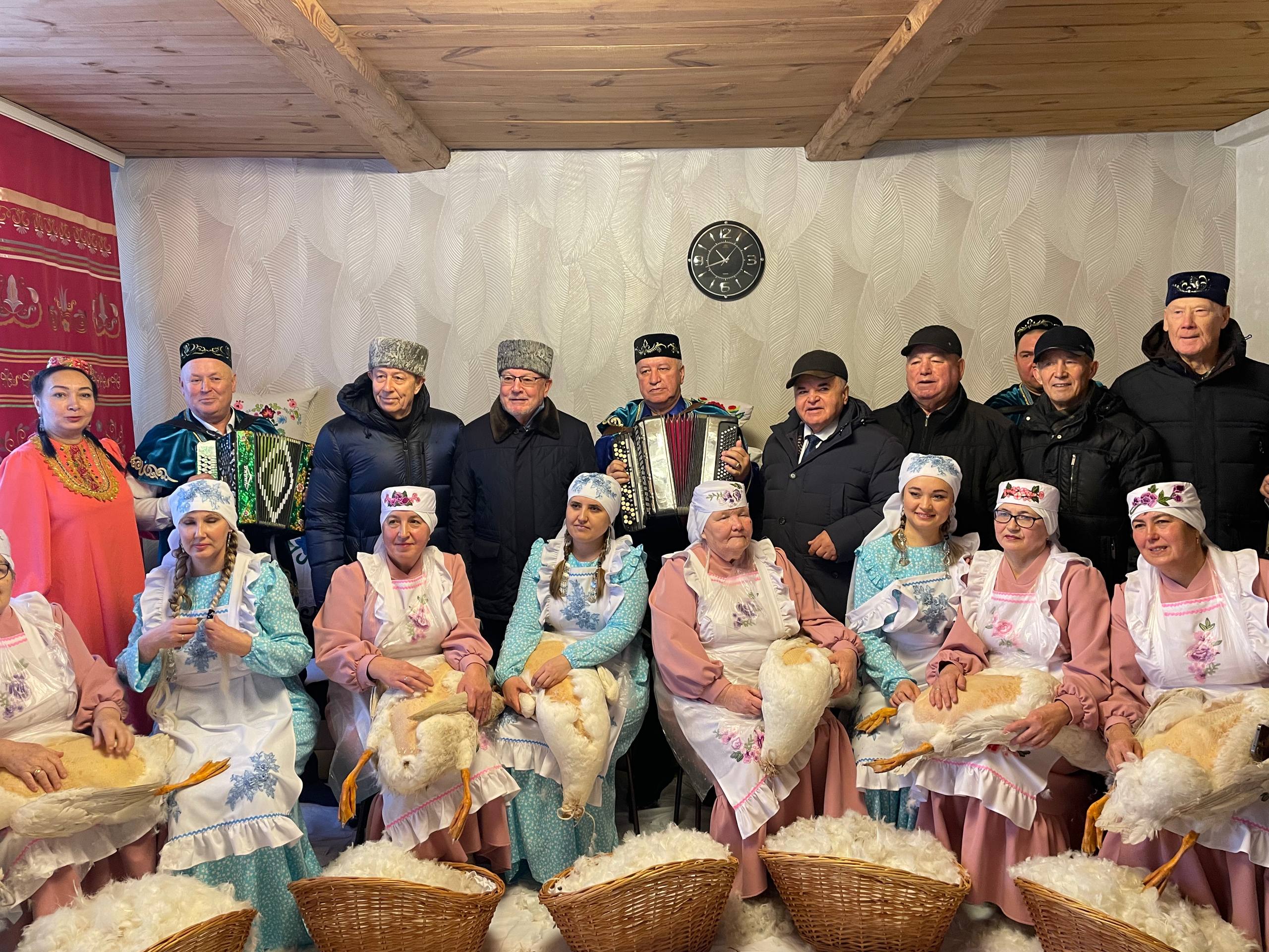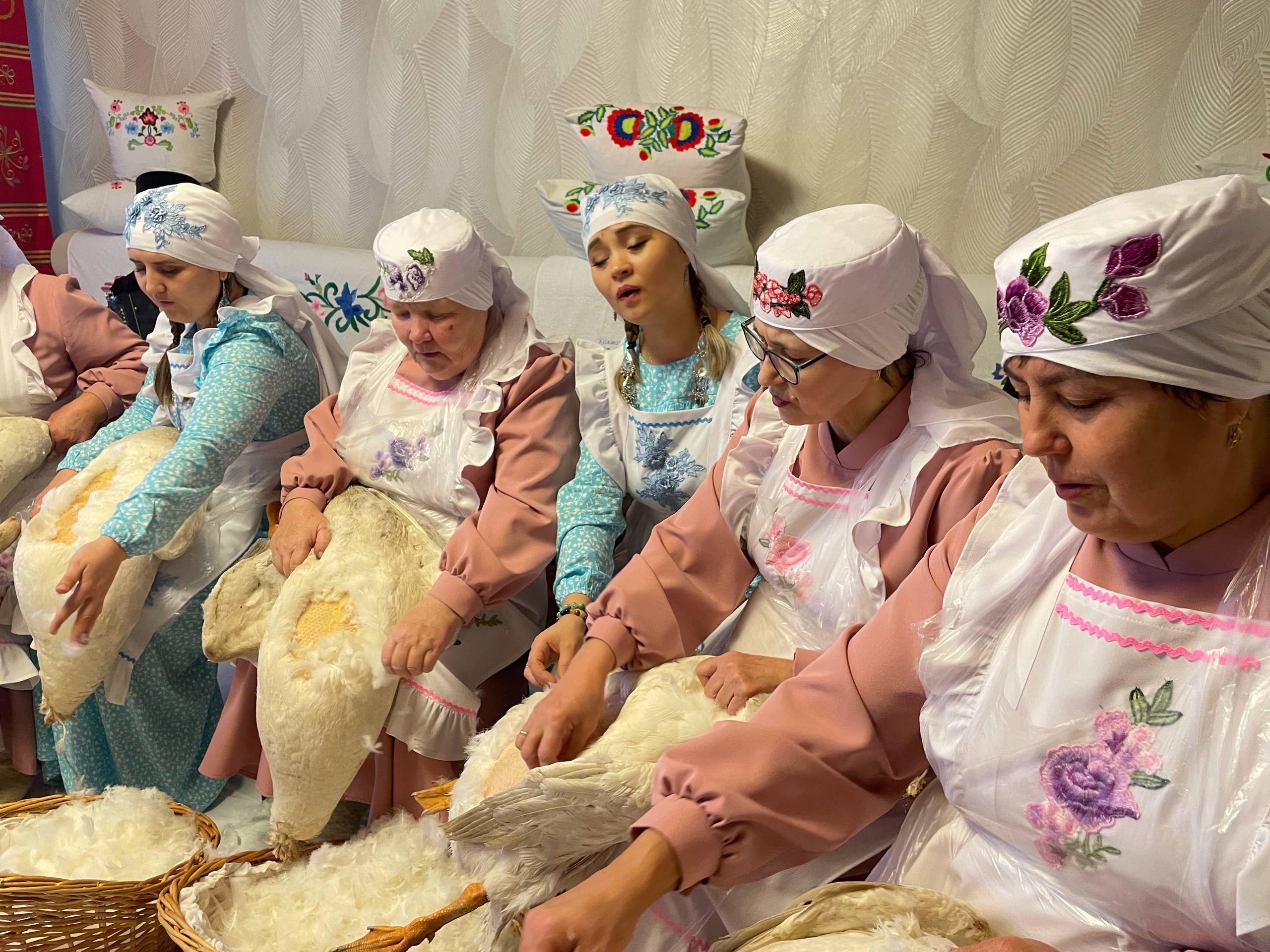 Өйдә исә түр якта ханымнар каз йолкыдылар. Фәйзетдиновларның быел үстергән 40 баш казлары җыр-бию катыш әнә шушы куллардан үтте дисәм дә ялгышмам. Йорт башлыгы 101 яшьлек Асия апа Фәйзетдиновадан да бәхетле кеше юк иде бугай. Беренчедән балалары, онык-оныкчыклары кайтып тулган, картлыгы кадердә. Эш беткәч, дүрт буынның бер өстәл артында утырып чәй эчүе дә – гасыр иясе өчен тиңсез хәзинә!