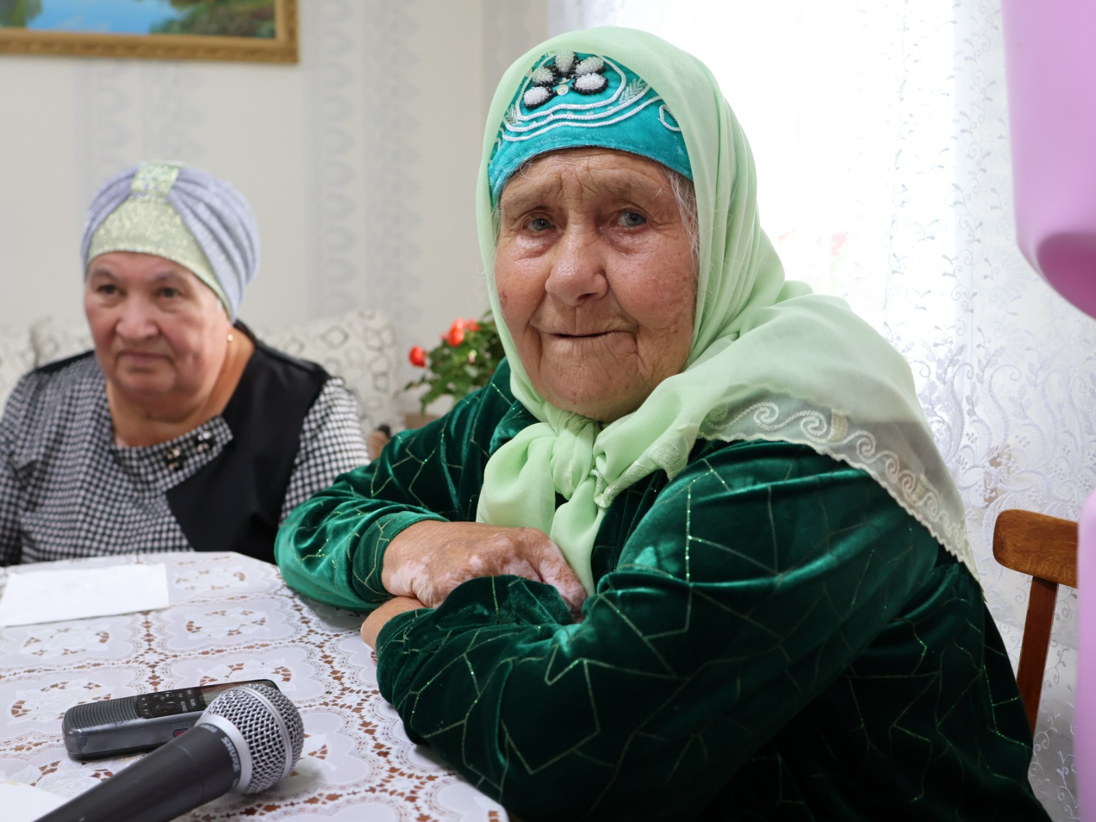 Флүрә апа Сәрвәровага һич кенә дә 95 яшь бирмәссең! Кадердә, хөрмәттә, елмаеп-балкып курчак өе кебек матур йортында каршылады ул безне.