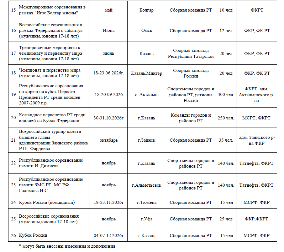 Татарстан көрәш федерациясе, республиканың спорт министрлыгы белән килештереп, 2026 елга көрәш ярышлары календарен тәкъдим итте.