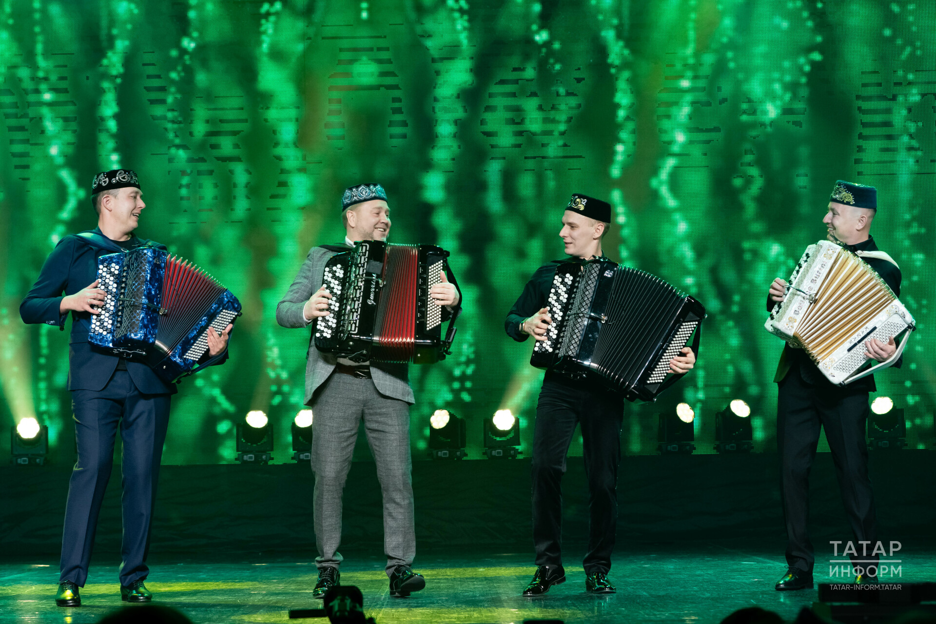 Татарстан дәүләт фольклор музыкасы ансамблен төзүгә дә Илһам Шакиров этәрә. Бүген ансамбльне Айдар Файзрахманов җитәкли. Күптән түгел генә 70 яшьлек юбилеен билгеләп үткән Айдар әфәнде сәхнәдә очып кына йөри. Айдар бабай дияргә тел дә борылмый. Яшьләр белән эшләгәч, үзе дә яшь әле ул. Ансамбль ярмәк биеп, сәхнәне кыздырды, хәтта чыбыркы да шартлаттылар. Айдар Фәйзрахманов матур итеп бер сикереп йомгаклап та куйды. Менә ичмасам көч, дәрт анда!