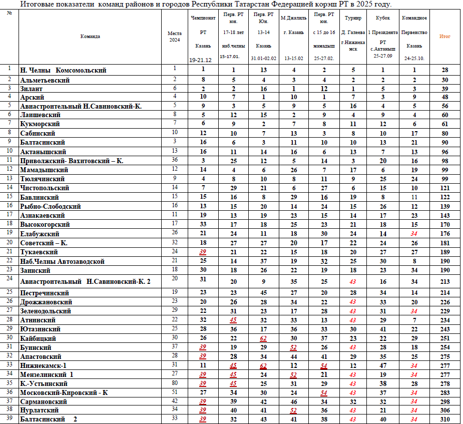 Көрәш буенча еллык рейтинг таблицасында кайсы команда ничәнче урында?