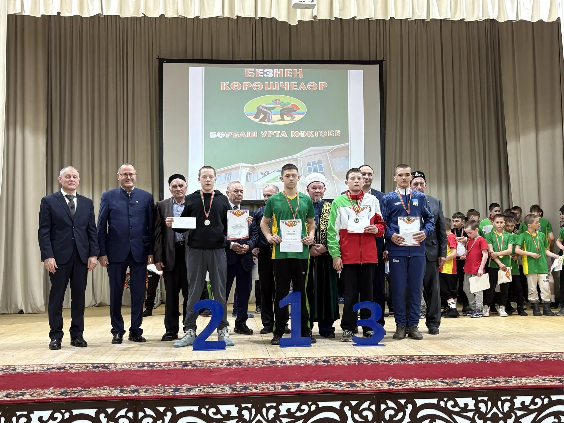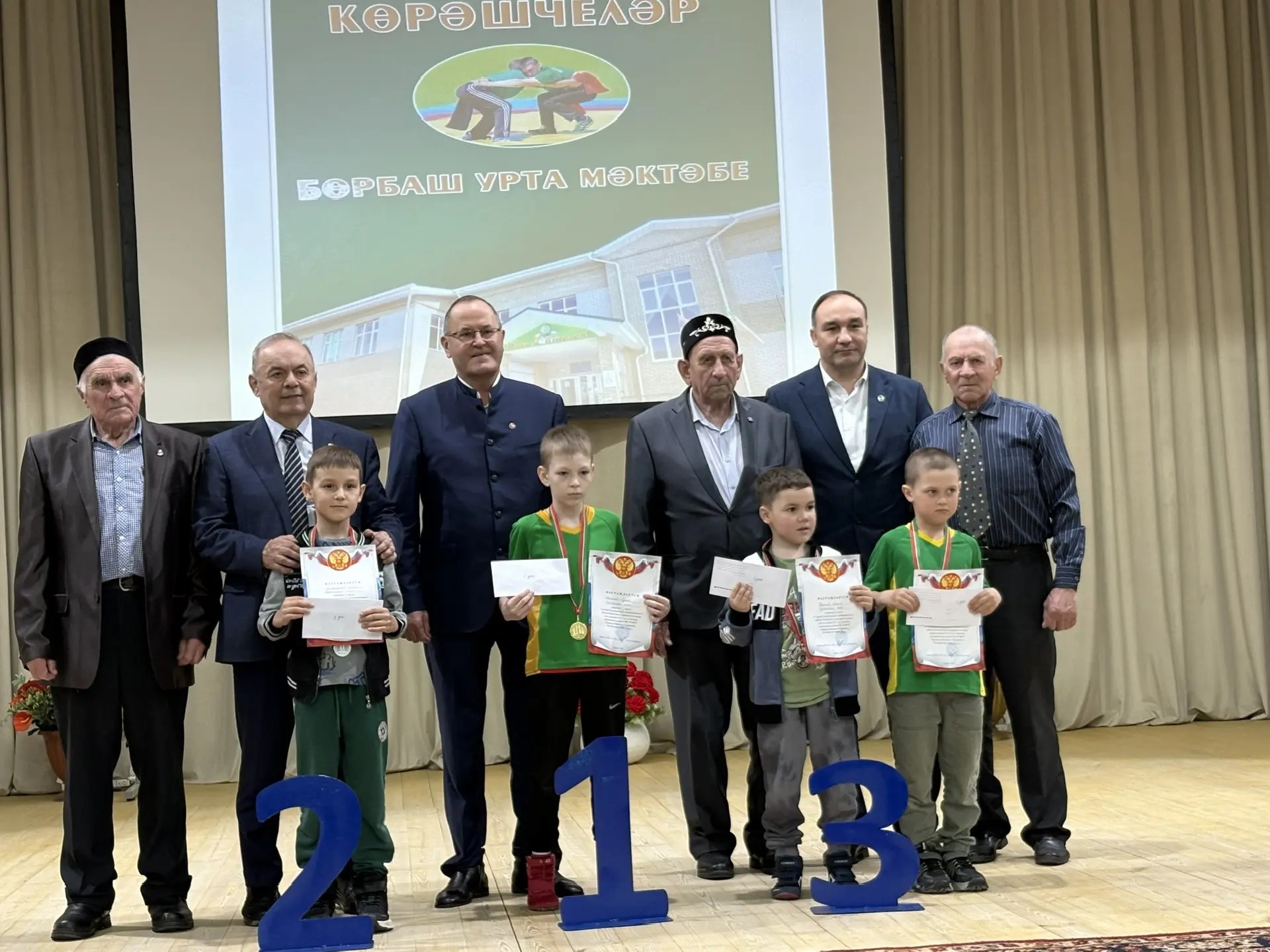 Бөрбаш урта мәктәбендә 8 спорт остасы тәрбияләнгән, шуның дүртесе бүгенге көндә вафат. Көрәшчеләр турындагы китапта Бөрбаш авылыннан тыш, Бөрбаш урта мәктәбендә төрле елларда укыган Алан, Сәрдегән, Нормабаш, Чапшар авылы көрәшчеләре турында да мәгълүматлар бар.