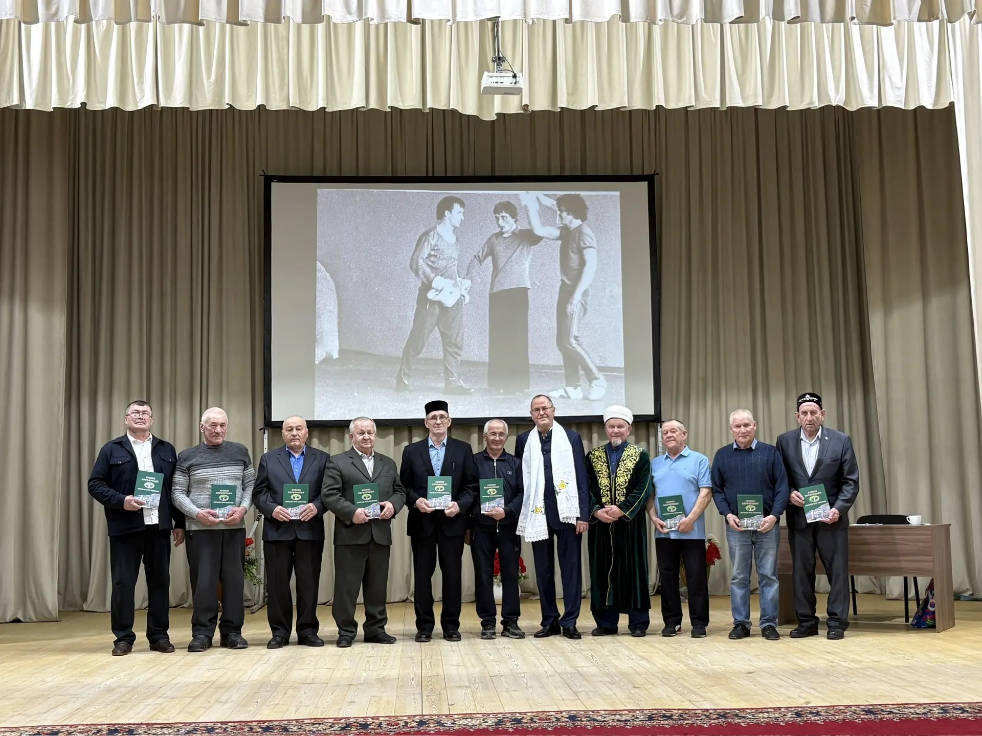 Бөрбаш көрәшчеләренә багышланган китапны тәкъдим итү чарасына заманында татар дөньясында “Бөрбаш көрәшчеләре” дип шаулаткан көрәшчеләр белән очрашырга Татарстан муниципаль Советы ассоциациясе рәисе, заманында үзе дә көрәш мәйданында бил алышкан Әгъзам Самат улы Гобәйдуллин да кайткан иде.