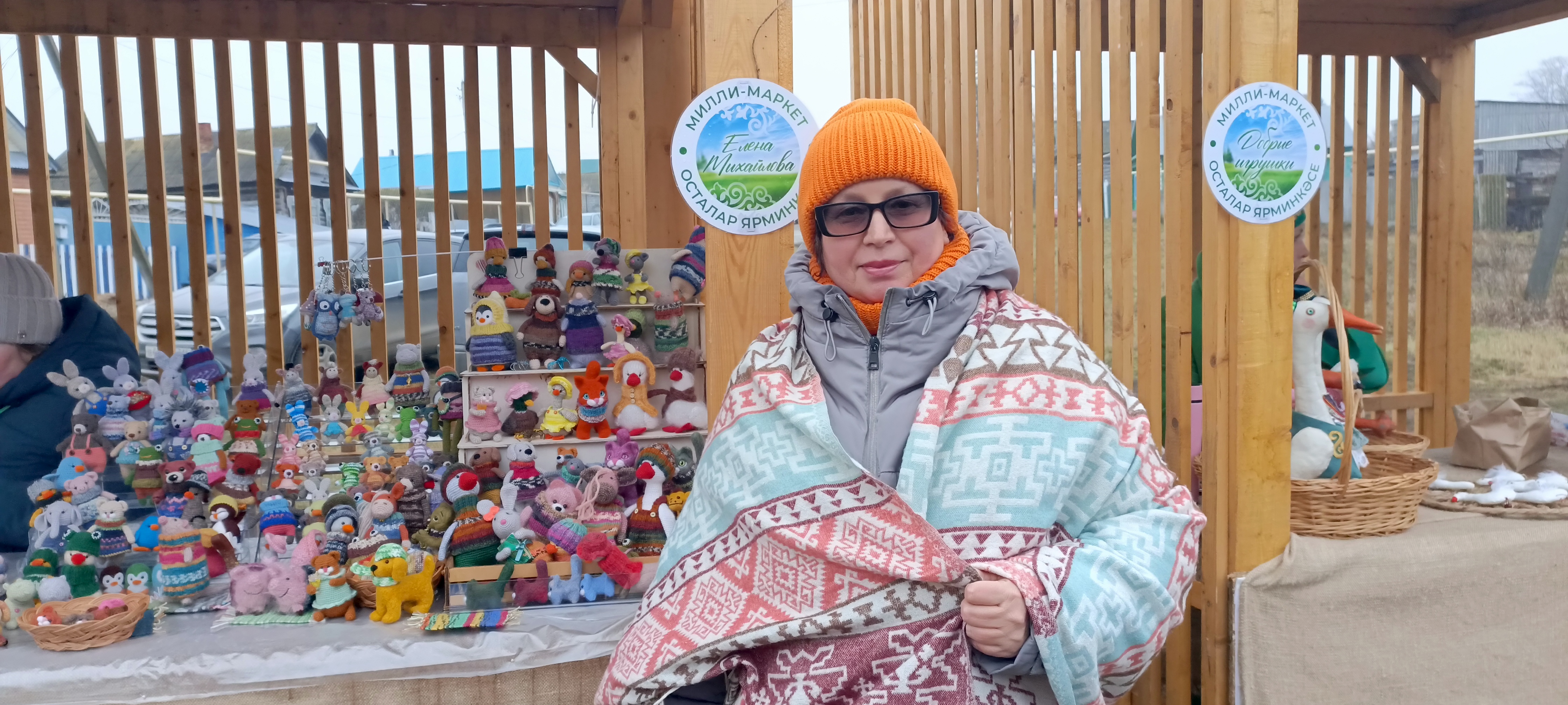 60 яшьлек Елена Михайлова да тормышын инде бәйләүсез күз алдына да китерә алмый. Тумышы белән Кукмарадан. Бирегә чакыру буенча сәүдә итәргә килгән. Уенчыклар бәйли ул. Бармак башы кадәрле курчаклары да ат бәясе. Ләкин чират торып ала халык. Сере гади – экологик яктан зыянсыз, йон җебеннән кул җылысы биреп эшләнгән, юарга да мөмкин.